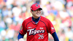 [OSEN=인천 ,백승철 기자] 2일 오후 인천 문학구장에서 열린 '2012 팔도 프로야구' SK 와이번스와 KIA 타이거즈의 경기 2회말 2사 안치용의 타석, 배트가 돌아가지 않았다는 판정에 서재응이 미소를 짓고 있다. SK는 왼 어깨 통증에 6개