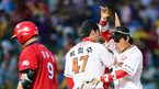 [OSEN=잠실, 윤세호 기자] LG 트윈스의 5할 사수 본능이 정성훈의 홈런에 의해이번에도 이어졌다. LG는 2일 잠실구장에서 열린 ‘2012 팔도 프로야구’ 한화 이글스와 주말 3연전 두 번째 경기에서 8-5로 승리, 시즌 10번째 5할 승률의