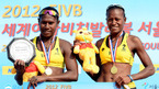 [OSEN=잠실, 곽영래 기자] 3일 서울 잠실 한강시민공원에서 열린 '2012 FIVB 세계여자비치발리볼 서울 챌린저 대회' 결승전, 독일 팀을 2-0으로 꺽고 1위를 차지한 바누아트 팀이 포옹을 하고 있다. 이 대회엔 우리나라와 미국, 독일,