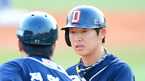 [OSEN=대구, 민경훈 기자] 3일 오후 대구 시민구장에서 열린 '2012 팔도 프로야구' 삼성 라이온즈와 두산 베어스의 경기 5회초 2사 주자 3루 두산 정수빈이 좌익수 앞 1타점 적시타를 날린 후 1루에서 전형도 코치와 하이파이브를 하