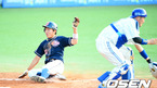 [OSEN=대구, 민경훈 기자] 3일 오후 대구 시민구장에서 열린 '2012 팔도 프로야구' 삼성 라이온즈와 두산 베어스의 경기 5회초 2사 주자 2루 두산 김현수의 중견수 앞 1타점 적시타 때 2루 주자 정수빈이 홈으로 몸을 날리며 세이프되