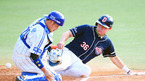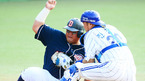 [OSEN=대구, 민경훈 기자] 3일 오후 대구 시민구장에서 열린 '2012 팔도 프로야구' 삼성 라이온즈와 두산 베어스의 경기 2회초 2사 주자 1,3루 두산 최재훈의 좌익수 플라이 아웃 타구때 3루 주자 최준석이 홈으로 쇄도, 진갑용에게