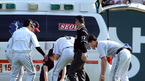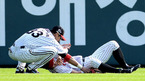 [OSEN=잠실, 곽영래 기자] 3일 오후 서울 잠실구장에서 열린 '2012 팔도 프로야구' LG 트윈스와 한화 이글스의 경기, 1회초 LG 이진영이 한화 이대수의 타구를 잡으려다 부상을 당해 고통스러워 하고 있다. LG와 한화의 주말 3연전 마