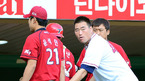 [OSEN=인천 ,백승철 기자] 2일 오후 인천 문학구장에서 열린 '2012 팔도 프로야구' SK 와이번스와 KIA 타이거즈의 경기 2회초를 마친 윤희상이 덕아웃으로 향하며 조인성과 하이파이브를 하고 있다. SK는 윤희상을 선발로 내세웠다.