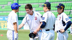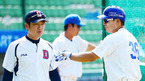 [OSEN=대구, 민경훈 기자] 3일 오후 대구 시민구장에서 '2012 팔도 프로야구' 삼성 라이온즈와 두산 베어스의 경기가 열릴 예정인 가운데 두산 이성열이 삼성 이승엽과 악수를 나누고 있다. 이 날 경기에서 삼성은 브라이언 고든(34