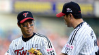 [OSEN=인천 ,백승철 기자] 2일 오후 인천 문학구장에서 열린 '2012 팔도 프로야구' SK 와이번스와 KIA 타이거즈의 경기 종료후 선동렬 감독과 윤석민이 하이파이브를 하고 있다. KIA는 이날 문학구장에서 열린 원정경기에서 선발 윤석