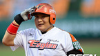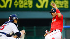 [OSEN=대전,지형준 기자] 5일 오후 대전구장에서 열린 '2012 팔도 프로야구' 한화 이글스와 롯데 자이언츠의 경기, 3회말 1사2루에서 한화 정범모가 동점 적시 2루타를 날리고 타임을 외치고 있다. 이날 한화는 6년차 우완 파이어볼