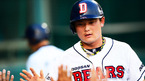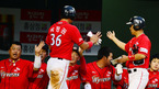 [OSEN=잠실, 민경훈 기자] 5일 오후 서울 잠실구장에서 열린 '2012 팔도 프로야구' 두산 베어스와 SK 와이번스의 경기에서 2회말 2사 주자 2루 두산 윤석민이 우익수 왼쪽 선취 1타점 적시타때 홈을 밟은 이성열이 덕아웃에서 기쁨을