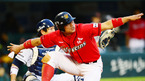 [OSEN=잠실, 민경훈 기자] 5일 오후 서울 잠실구장에서 열린 '2012 팔도 프로야구' 두산 베어스와 SK 와이번스의 경기에서 4회초 2사 주자 1,2루 SK 임훈의 좌익수 앞 1타점 적시타때 2루 주자 박정권이 홈으로 몸을 날린 후 SK 박정권