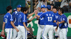 [OSEN=광주, 이대선 기자] 5일 오후 광주 무등야구장에서 열린 '2012 팔도 프로야구' KIA 타이거즈와 삼성 라이온즈의 경기, 5회말 2사 삼성 장원삼이 KIA 송산을 삼진 처리하고 더그아웃으로 가며 동료들의 축하를 받고 있다. 삼성은