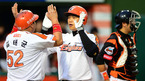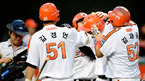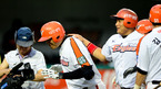 [OSEN=대전,지형준 기자] 5일 오후 대전구장에서 열린 '2012 팔도 프로야구' 한화 이글스와 롯데 자이언츠의 경기, 3회말 2사1,3루에서 한화 최진행이 스리런 홈런을 날리고 홈을 밟으며 동료선수들의 축하를 받고 있다. 이날 한화
