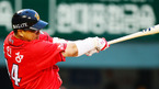 [OSEN=대전,지형준 기자] 5일 오후 대전구장에서 열린 '2012 팔도 프로야구' 한화 이글스와 롯데 자이언츠의 경기, 3회말 2사1,3루에서 한화 최진행이 스리런 홈런을 날리고 타구를 바라보고 있다. 이날 한화는 6년차 우완 파이어볼