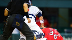 [OSEN=대전,지형준 기자] 5일 오후 대전구장에서 열린 '2012 팔도 프로야구' 한화 이글스와 롯데 자이언츠의 경기, 3회말 1사 1,3루에서 롯데 이용훈이 한화 한상훈에 내야안타로 역전을 허용하고 있다. 이날 한화는 6년차 우완 파이