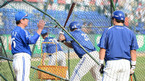 [OSEN=광주, 이대선 기자] 5일 오후 광주 무등야구장에서 열린 '2012 팔도 프로야구' KIA 타이거즈와 삼성 라이온즈의 경기에 앞서 삼성 이승엽이 박석민의 타격 훈련을 돕고 있다. 삼성은 좌완 장원삼, KIA는 우완 앤서니를 내세웠다