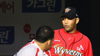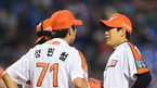 [OSEN=대전,지형준 기자] 5일 오후 대전구장에서 열린 '2012 팔도 프로야구' 한화 이글스와 롯데 자이언츠의 경기, 8회초 정민철 투수코치가 마운드에 올라 김혁민과 이야기를 나누고 있다. 이날 한화는 6년차 우완 파이어볼러 김혁