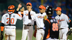 [OSEN=대전,지형준 기자] 5일 오후 대전구장에서 열린 '2012 팔도 프로야구' 한화 이글스와 롯데 자이언츠의 경기, 7회초 수비를 마친 한화 선발투수 김혁민이 더그아웃에서 동료선수들과 하이파이브를 하고 있다. 이날 한화는 6년