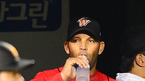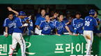 [OSEN=광주, 이대선 기자] 5일 오후 광주 무등야구장에서 열린 '2012 팔도 프로야구' KIA 타이거즈와 삼성 라이온즈의 경기, 8회초 1사 2루 삼성 손주인의 우전 1타점 적시 2루타때 홈을 밟은 2루주자 이승엽이 더그아웃에서 동료들의