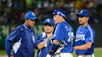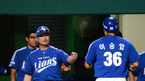 [OSEN=광주, 이대선 기자] 5일 오후 광주 무등야구장에서 열린 '2012 팔도 프로야구' KIA 타이거즈와 삼성 라이온즈의 경기, 8회초 1사 2루 삼성 손주인의 우전 1타점 적시 2루타때 류중일 감독이 홈을 밟은 2루주자 이승엽과 하이파