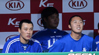 [OSEN=광주, 이대선 기자] 5일 오후 광주 무등야구장에서 열린 '2012 팔도 프로야구' KIA 타이거즈와 삼성 라이온즈의 경기, 7회말 1사 1,3루 KIA 김주형 타석때 삼성 장원삼이 마운드에 올라온 오치아이 코치, 포수 진갑용과 이야기를