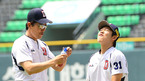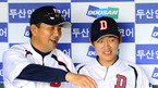 [OSEN=잠실,박준형 기자] 6일 오후 서울 잠실구장에서 열리는 2012 팔도 프로야구 두산 베어스와 SK 와이번스의 경기 전 두산 김진욱 감독과 정수빈이 이야기를 나누고 있다 SK는 우완 선발 마리오를 시즌 4승에 도전한다. 올 시즌