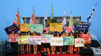 [OSEN=연평도, 정송이 기자] 5일 오후 인천 옹진군 연평면 종합운동장에서 진행된 '김장훈과 V원정대가 부르는 희망의 노래-연평 아리랑 프로젝트 2탄'에서 V원정대가 연평도 주민들에게 인사를 하고 있다. 이날 행사는 기부천사