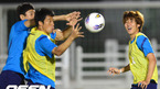 [OSEN=도하(카타르),백승철 기자] 5일 오후(현지시각) 카타르 도하 카타르축구협회 테크니컬센터에서 열린 대표팀 훈련에서 김영광이 이동국을 앞에두고 볼을 잡고 있다. 최강희 감독이 지휘하는 대표팀은 오는 9일 새벽(한국시