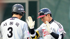 [OSEN=대전,지형준 기자] 7일 오후 대전구장에서 열린 '2012 팔도 프로야구' 한화 이글스와 롯데 자이언츠의 경기, 1회말 1사 1,3루에서 한화 김태균이 스리런 홈런을 날리고 홈을 밟으며 강동우와 하이파이브를 하고 있다. 이날 한
