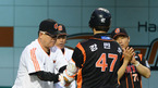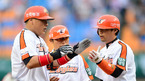 [OSEN=대전,지형준 기자] 7일 오후 대전구장에서 열린 '2012 팔도 프로야구' 한화 이글스와 롯데 자이언츠의 경기, 4회초 무사 1루에서 롯데 강민호가 투런포를 날리고 더그아웃에서 양승호 감독과 하이파이브를 하고 있다. 이날 한