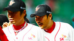 [OSEN=인천, 민경훈 기자] 8일 오후 인천 문학구장에서 열린 '2012 팔도 프로야구' SK 와이번스와 삼성 라이온즈의 경기에서 선발 김광현의 호투와 이호준, 박정권의 홈런 등 장단 8안타를 집중시킨 타선을 앞세워 5-1로 완승을 거뒀