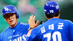 [OSEN=인천, 민경훈 기자] 8일 오후 인천 문학구장에서 열린 '2012 팔도 프로야구' SK 와이번스와 삼성 라이온즈의 경기에서 1회초 1사 삼성 조동찬이 선제 좌중월 솔로홈런을 날린 후 덕아웃에서 김태균코치와 하이파이브를 하고