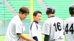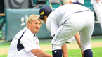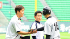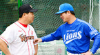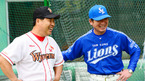[OSEN=인천, 민경훈 기자] 8일 오후 인천 문학구장에서 '2012 팔도 프로야구' SK 와이번스와 삼성 라이온즈의 경기가 열린 예정인 가운데 SK 이만수 감독과 삼성 류중일 감독이 악수를 나눈 후 즐겁게 얘기를 나누고 있다. 이 날 경기