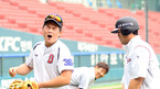 [OSEN=잠실,박준형 기자] 8일 오후 서울 잠실구장에서 열리는 2012 팔도 프로야구 LG 트윈스와 두산 베어스의 경기 전 두산 김현수가 최준석의 스트레칭을 돕고 있다 두산은 LG와 주말 3연전 첫 경기에서 김선우를 선발투수로 마운