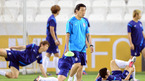 [OSEN=도하(카타르),백승철 기자] 7일 오후(현지시각) 카타르 도하 알 사드 스타디움에서 열린 대표팀 훈련에서 선수들이 몸을 풀고있는 가운데, 최강희 감독이 훈련 준비를 하고 있다. 훈련 당일경기장에는 에어컨이 가동돼 밖과