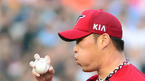 [OSEN=부산, 이대선 기자] 9일 오후 부산 사직야구장에서 열린 '2012 팔도 프로야구' 롯데 자이언츠와 KIA 타이거즈의 경기, 6회말 1사 1,2루 롯데 손아섭 타석때 KIA 김진우가 공에 바람을 불어 넣고 있다. 지난해 6월 30일 사직구장에