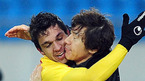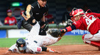 [OSEN=부산, 이대선 기자] 9일 오후 부산 사직야구장에서 열린 '2012 팔도 프로야구' 롯데 자이언츠와 KIA 타이거즈의 경기, 5회말 2사 2루 롯데 박준서의 좌전 1타점 동점 적시타때 홈에서 세이프된 2루루자 강민호가 더그아웃으로