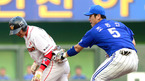 [OSEN=문학, 곽영래 기자] 9일 오후 인천 문학구장에서 열린 '2012 팔도 프로야구' SK 와이번스와 삼성 라이온즈의 경기, 5회말 1사 1,2루 SK 이호준의 좌전안타때 1루 주자 최정이 3루를 노리다 박석민의 재치있는 플레이로런다운에