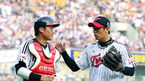 [OSEN=잠실,지형준 기자] 9일 오후 잠실구장에서 열린 '2012 팔도 프로야구' LG 트윈스와 두산 베어스의 경기, 5회초 수비를 마치고 LG 김태군과 김광삼이 이야기를 나누며 더그아웃으로 향하고 있다. 두산은 새로운 에이스로 떠오