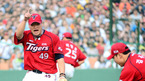 [OSEN=부산, 이대선 기자] 9일 오후 부산 사직야구장에서 열린 '2012 팔도 프로야구' 롯데 자이언츠와 KIA 타이거즈의 경기, 5회말 무사 1루 KIA 김진우가 롯데 박종윤의 번트 타구를 잡으려는 김주형에게 주자의 위치를 알려주고 있