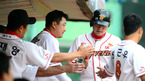 [OSEN=문학, 곽영래 기자] 9일 오후 인천 문학구장에서 열린 '2012 팔도 프로야구' SK 와이번스와 삼성 라이온즈의 경기, 5회말 1사 1,2루 SK 이호준의 안타로 득점에 성공한 SK 임훈이 덕아웃에서 선수들과 기뻐하고 있다. 삼성 라이온