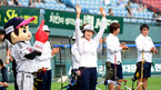 [OSEN=잠실,지형준 기자] 9일 오후 잠실구장에서 열린 '2012 팔도 프로야구' LG 트윈스와 두산 베어스의 경기, 경기에 앞서 양궁 국가대표 기보배가 소음 적응훈련을 하기 위해 그라운드로 나서 인사를 하고 있다. 두산은 새로운 에