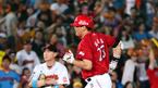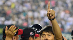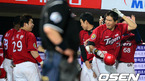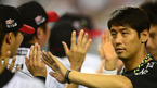 [OSEN=부산, 이대선 기자] 9일 오후 부산 사직야구장에서 열린 '2012 팔도 프로야구' 롯데 자이언츠와 KIA 타이거즈의 경기, 9회초 무사 KIA 최희섭이 우중월 동점 솔로포를 치고 더그아웃에서 동료들의 축하를 받던 중 머리를 만지며