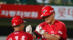 [OSEN=부산, 이대선 기자] 9일 오후 부산 사직야구장에서 열린 '2012 팔도 프로야구' 롯데 자이언츠와 KIA 타이거즈의 경기, 9회초 무사 KIA 최희섭이 우중월 동점 솔로포를 치고 백인호 코치와 하이파이브를 하고 있다. 지난해 6월 30