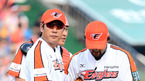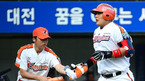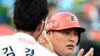 [OSEN=대전, 이대선 기자] 10일 오후 대전 한밭야구장에서 열린 '2012 팔도 프로야구' 한화 이글스와 넥센 히어로즈의 경기, 4회말 2사 만루 한화 신경현 타석때 밀어내기 볼넷으로 홈을 밟은 3루주자 김태균이 더그아웃에서 동료들