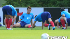 [OSEN=파주,지형준 기자] 2014 브라질 월드컵 아시아 지역 최종예선 1차전서 기분좋은 승리를 거둔 한국 축구대표팀이 레바논전을 앞두고 10일 오후 파주 트레이닝센터(NFC)에서 회복훈련을 가졌다. 김신욱이 스트레칭을 하며 몸을