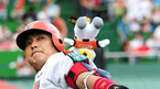[OSEN=대전, 이대선 기자] 10일 오후 대전 한밭야구장에서 열린 '2012 팔도 프로야구' 한화 이글스와 넥센 히어로즈의 경기, 5회말 1사 한화 김태균이 좌전 솔로 홈런을 날리고 더그아웃에서 관중석을 향해 마스코트 인형을 던지고