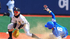 [OSEN=대전, 이대선 기자] 10일 오후 대전 한밭야구장에서 열린 '2012 팔도 프로야구' 한화 이글스와 넥센 히어로즈의 경기, 2회초 1사 2루 넥센 유재신 타석때 한화 박찬호가 2루 견제를 시도하고 있다. 한화는 '코리안특급' 박찬호