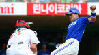 [OSEN=대전, 이대선 기자] 10일 오후 대전 한밭야구장에서 열린 '2012 팔도 프로야구' 한화 이글스와 넥센 히어로즈의 경기, 1회초 1사 1루 한화이대수가 넥센 유한준 타석때 도루에 성공한 1루주자 정수성의 흙먼지를 털어주고 있