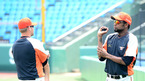 [OSEN=대전, 이대선 기자] 10일 오후 대전 한밭야구장에서 열린 '2012 팔도 프로야구' 한화 이글스와 넥센 히어로즈의 경기에 앞서 한화 새로운 외국인 투수 션헨과 바티스타가 그라운드에 나가 몸을 풀고 있다. 한화는 '코리안특급