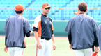 [OSEN=대전, 이대선 기자] 10일 오후 대전 한밭야구장에서 열린 '2012 팔도 프로야구' 한화 이글스와 넥센 히어로즈의 경기에 앞서 동료들보다 먼저 그라운드에 나온 한화 새로운 외국인 투수 션헨이 동료들을 맞이하고 있다. 한화