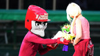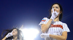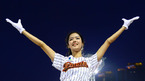 [OSEN=목동, 민경훈 기자] 12일 오후 목동구장에서 열린 '2012 팔도 프로야구' 넥센 히어로즈와 KIA 타이거즈의 경기에서 클리닝 타임에 가수 알리가 그라운드에 나와 열창을 한 후 턱돌이가 알리에게 꽃다발과 통닭 세트를 무릎꿇